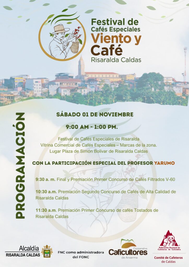 El Festival de Cafés Especiales “Viento y Café” es una iniciativa liderada por la Alcaldía de Risaralda Caldas, el Comité de Cafeteros de Caldas y la Cooperativa de Caficultores de Anserma.