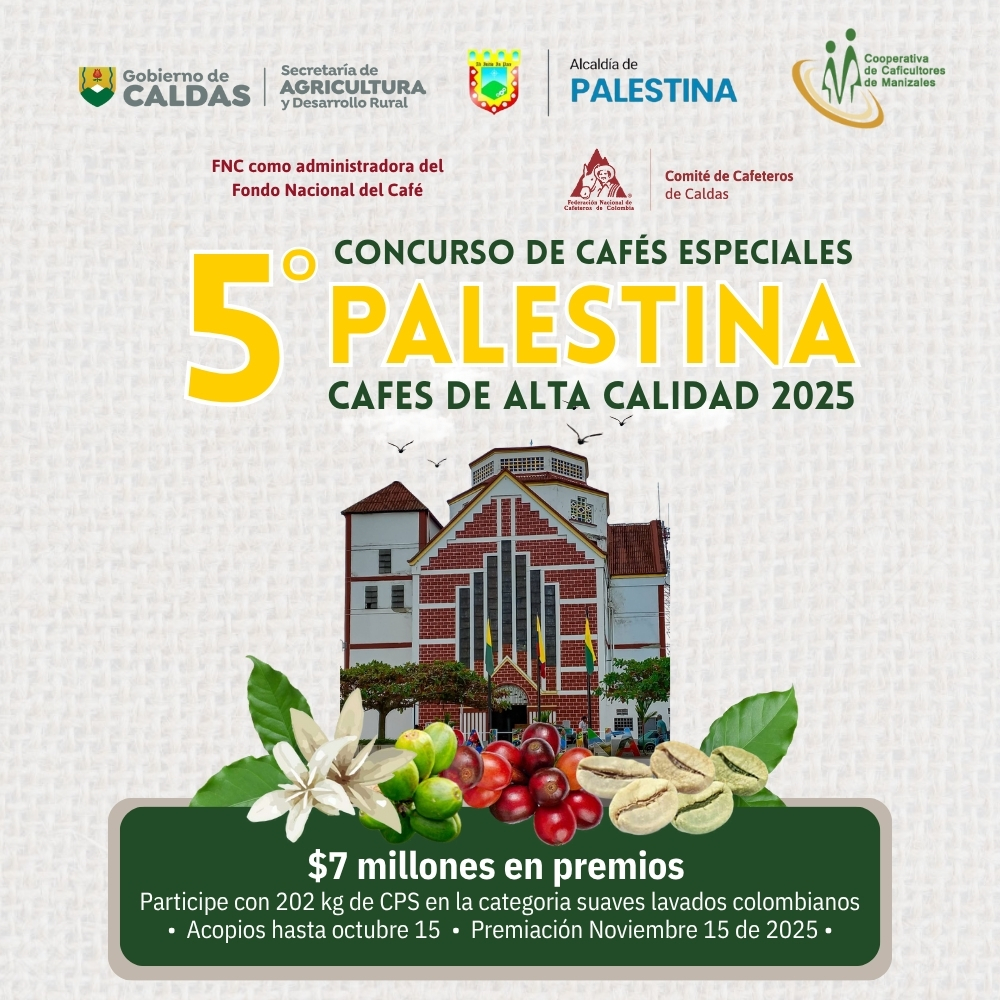 El municipio de Palestina se prepara para celebrar este sábado 15 de noviembre la ceremonia de premiación del V Concurso de Cafés Especiales de Alta Calidad, un evento que reconoce el esfuerzo, la dedicación y la excelencia de los caficultores del municipio.