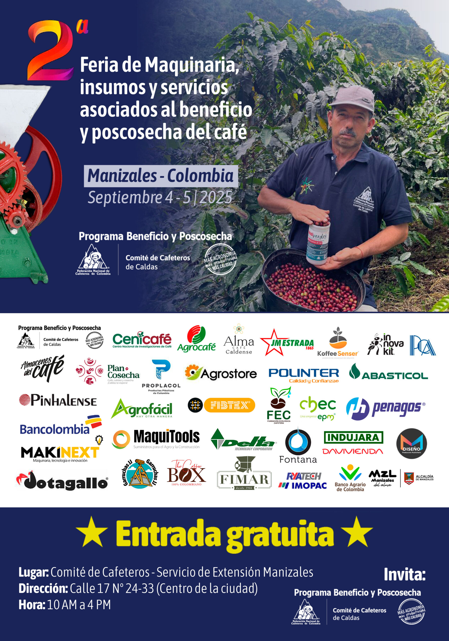 En esta segunda versión se espera la participación de cerca de 40 expositores, entre ellos dos internacionales, que presentarán desde despulpadoras, secadores solares y bioreactores, hasta innovaciones en filtros, sistemas de manejo de subproductos y maquinaria especializada para pequeños, medianos y grandes caficultores.