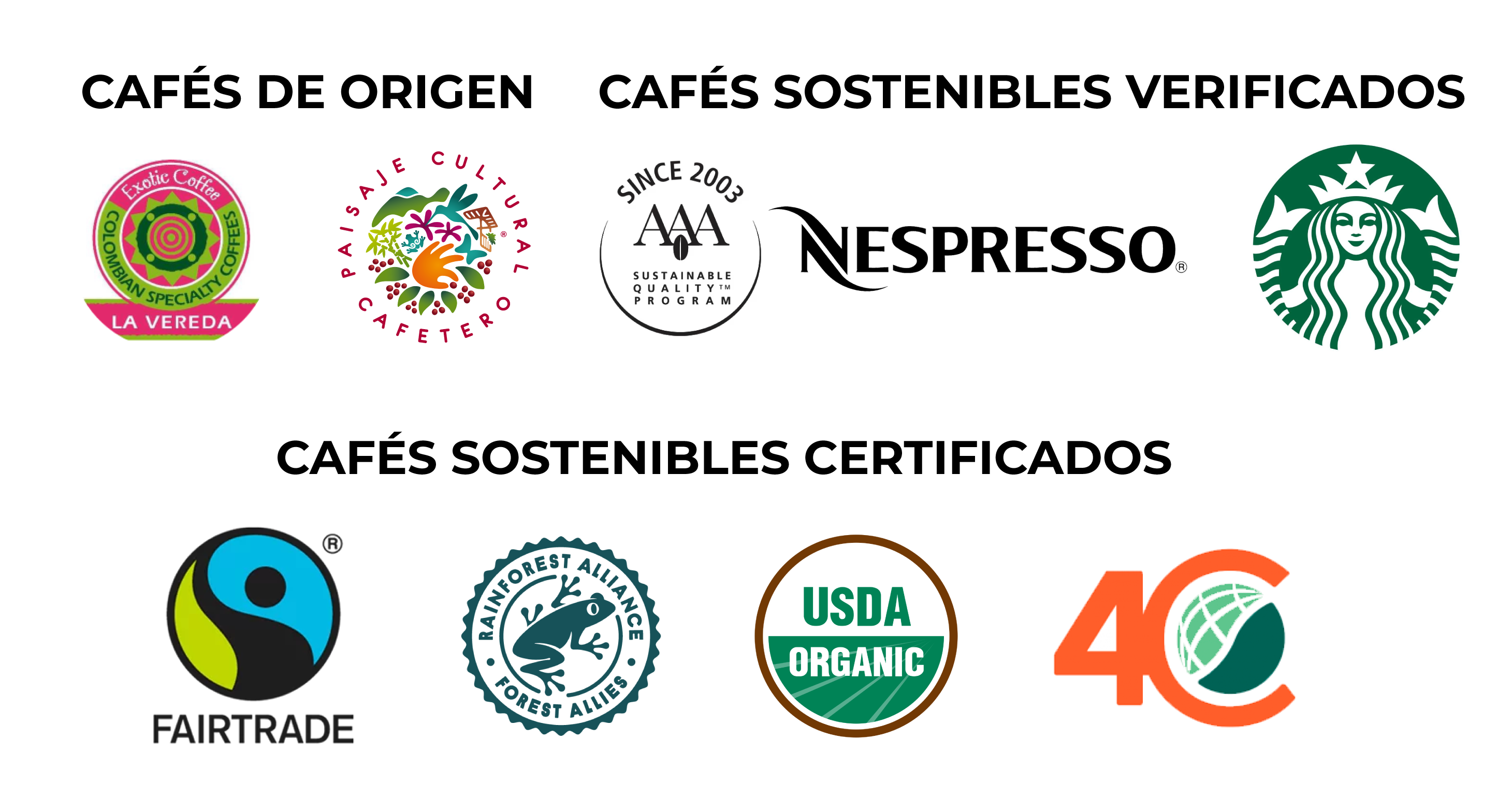 Los 25 municipios cafeteros de Caldas cuentan hoy con diferentes sellos, certificaciones o verificaciones de café especial, gracias a un trabajo articulado entre el Comité de Cafeteros de Caldas, las cinco Cooperativas de Caficultores del departamento (Aguadas, Alto Occidente de Caldas, Anserma. Manizales y Norte de Caldas), Trillacoop Trilladora de las Cooperativas del Occidente de Caldas, los caficultores y la Federación Nacional de Cafeteros.